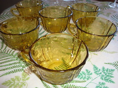 Title (ebay affiliate link): Vintage Depression Glass Federal Madrid Coffee Cups Amber 6 of them