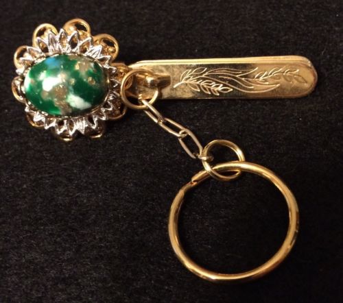 Title (ebay affiliate link): Vintage King's Key Finder Keychain. Green Multicolor Stone.