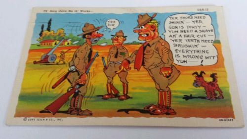 WWII ARMY CARTOON POSTCARD POSTMARKED 1943 FORT GEORGE G. MEADE
