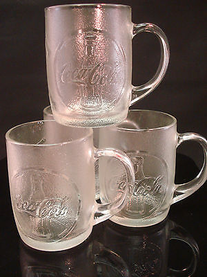 Title (ebay affiliate link): 1997 Coca Cola Brand Clear Frosted Glass 10 Oz. Mugs - Set Of 4 - Coke MINT