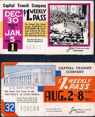 Title (ebay affiliate link): Two - Capital Transit Company street Car Lines weekly passes - 1934 - 1936