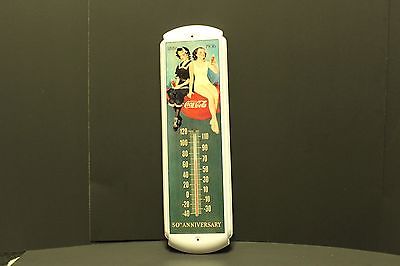COCA COLA 50TH ANNIVERSARY THERMOMETER METAL TIN SIGN