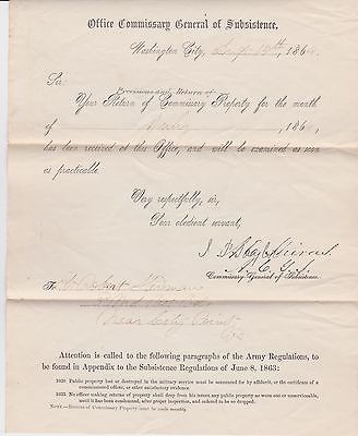 Title (ebay affiliate link): 15 Aug 1864 Office Commissary General of Subsistence Document