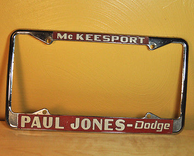 Vintage Dodge License Plate Frame Paul Jones Dodge McKeesport PA Embossed