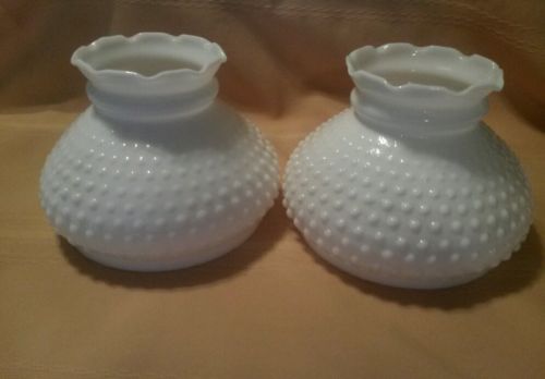 Vintage Milk Glass Hob Nail Lampshades (Set of 2)