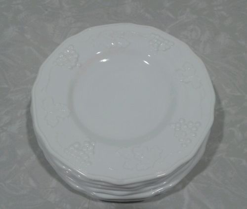 7 Vintage White Milk Glass Dessert Plate Harvest Grape Vine Pattern 6 1/8"