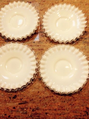 ( 4 ) Fenton White Milk Glass 6" Saucers With Ruffled Clear Edge