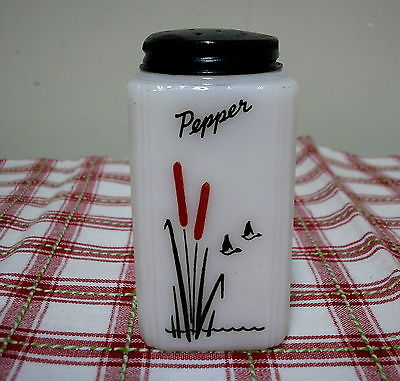 TIPP CITY MILK GLASS RED*BLACK CATTAIL TALL PEPPER SHAKER