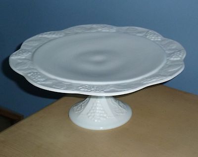 VINTAGE INDIANA WHITE MILK GLASS PEDESTAL CAKE PLATE STAND HARVEST GRAPE LEAF