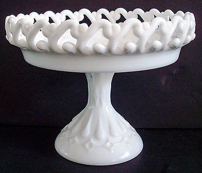 Title (ebay affiliate link): BEAUTIFUL FENTON WHITE MILK GLASS REVERSE C PATTERN COMPOTE PEDESTAL