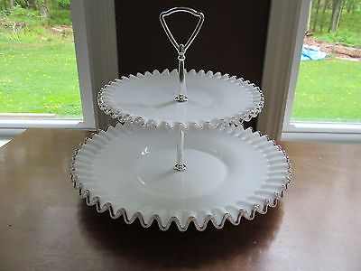 Vintage Fenton Silver Crest 2 Tier Milk Glass Tidbit Cookie Cupcake Tray