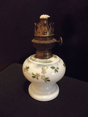 Victorian Miniature Oil Lamp Milk Glass Victor Burner Hand Painted