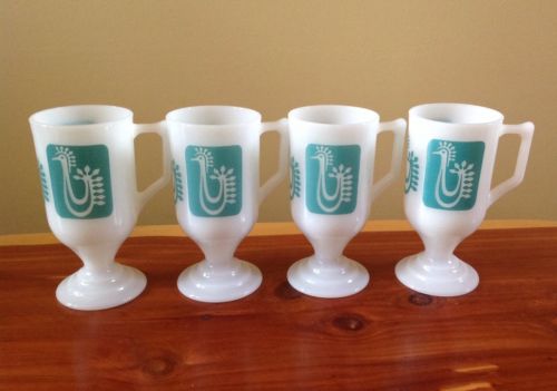 Title (ebay affiliate link): Vintage Mid Century 4 Aqua Chicken Rooster Milk Glass Footed Mug/Cup - SO ADORB!