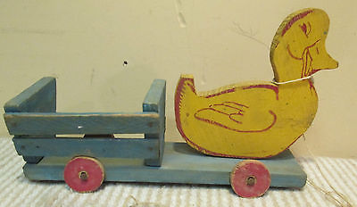Title (ebay affiliate link): VINTAGE/ANTIQUE ALL WOOD DUCK ON CART PULL TOY (FOLK ART?)
