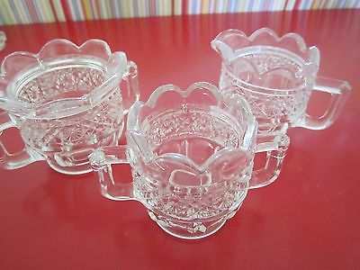 Title (ebay affiliate link): Antique 3 Pc Lot - Clear Pressed Glass Child Tea Set Sugar Bowls + Creamer A+