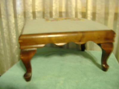 vintage needlepoint footstool blue/roses