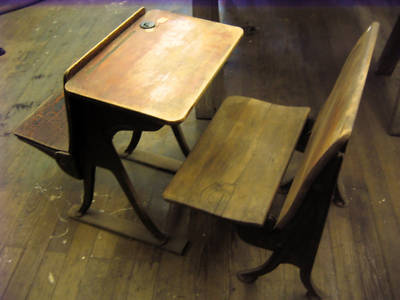 Title (ebay affiliate link): PAIR OF SCHOOL DESKS--FRONT & BACK BAKELITE INKWELL
