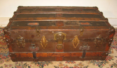 Title (ebay affiliate link): ANTIQUE OAK STAVE FLAT TOP WOODEN CHEST, COFFEE TABLE!
