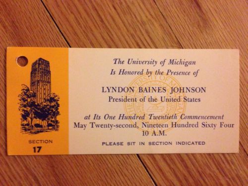 Rare President Lyndon Baines Johnson Michigan Stadium Ticket Stub May 1964