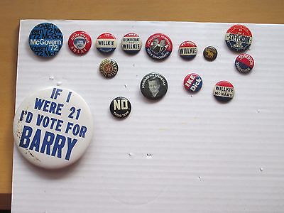Lot of 15 Vintage Presidential Campaign Buttons 1940-1972