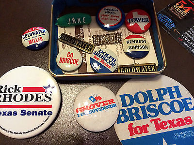 lot of vintage campaign buttons pins Nixon Kennedy Goldwater and Texas politics