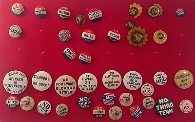 Title (ebay affiliate link): Presidential Buttons (39) FDR/Eleanor/No Third Term/Willkie Mcnary/DewayWarren
