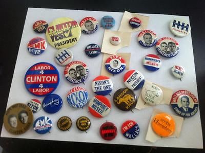 Lot Assorted President Politcal Buttons Wallace Nixon Clinton Kennedy Landon Etc