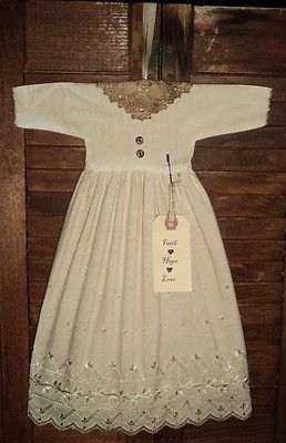 Title (ebay affiliate link): GRUNGY~PRIMITIVE WALL~CUPBOARD~DOLL DRESS ECRU FANCY EMBROIDERY FOLK ART DECOR