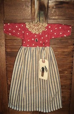 Title (ebay affiliate link): GRUNGY~PRIMITIVE WALL~CUPBOARD~DOLL DRESS AMERICANA BLUE TICKING FOLK ART DECOR