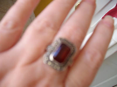 BEAUTIFUL GARNET AND MARCASITE ANTIQUE RING SZ 8
