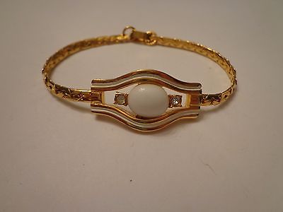 VINTAGE 50'S GOLD PLATE MODERNIST RHINESTONE WHITE MILK GLASS BRACELET