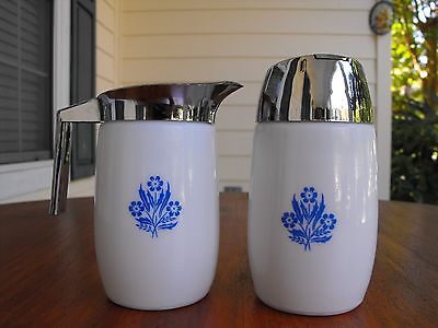 Title (ebay affiliate link): VINTAGE MILK GLASS SUGAR AND CREAM BLUE CORNFLOWER PATTERN - MARKED VAN PAK