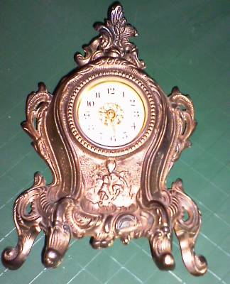 ANTIQUE 1904 BRASS MANTEL WARNER 1510 FOOTED CLOCK