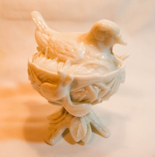 VINTAGE WESTMORELAND MILK GLASS NESTING BIRD JAR