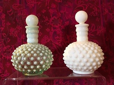 Title (ebay affiliate link): Two Fenton? Milk Glass and Opalescent with Glass Stoppers.1940's? Perfume Bottle