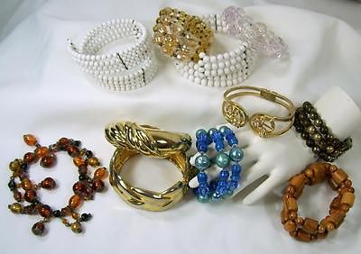 Lot 11 Vintage Bracelets Memory Wire Bead Milk Glass Clamper Gold Tone