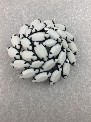 VINTAGE JAPANNED MILK GLASS RHINESTONE DOME BROOCH
