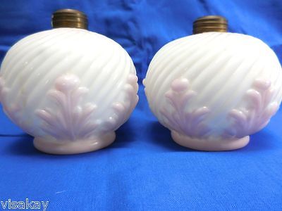Title (ebay affiliate link): 2 ANTIQUE MINIATURE OIL LAMP, PINK & WHITE, MILK GLASS BOTTOMS, NO RESERVE