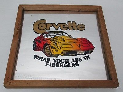 Title (ebay affiliate link): VINTAGE CHEVROLET CORVETTE CARNIVAL MIRROR WRAP YOUR ASS IN FIBERGLASS 13" X 13"