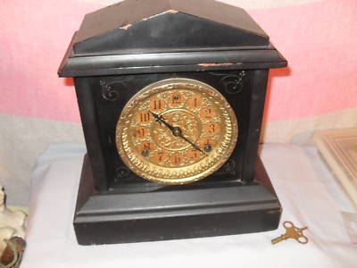 ANTIQUE SESSIONS 8 DAY MANTLE CLOCK WITH KEY (WORKING)