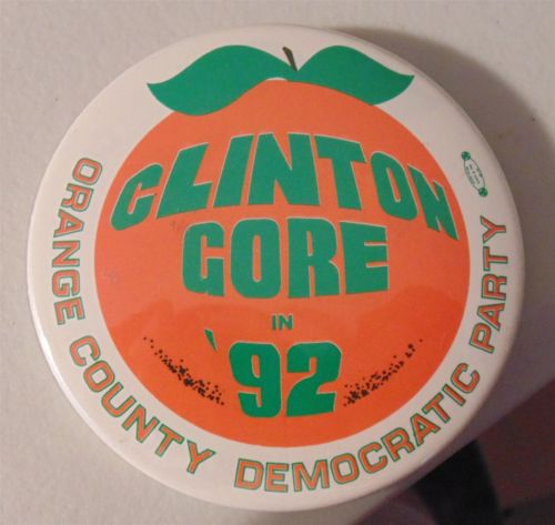 Title (ebay affiliate link): Bill Clinton Gore 1992 Orange California campaign button pin political