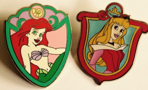 Title (ebay affiliate link): Disney 2 Pin Lot, PRINCESS ARIEL Little Mermaid AURORA Sleeping Beauty Crest Set