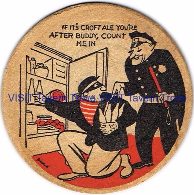 Tough 1930s Croft Ale ROBBER set 4 inch coaster Tavern Trove Boston MA
