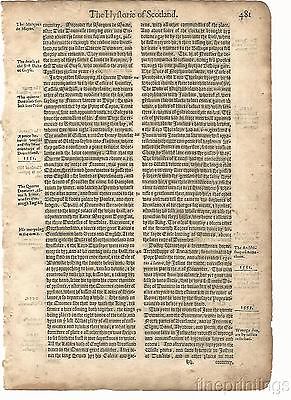 1577 LEAF FROM HOLINSHED CHRONICLES OF SCOTLAND