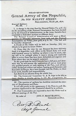 Title (ebay affiliate link): 4 March 1876 Grand Army of the Republic General Orders No. 10