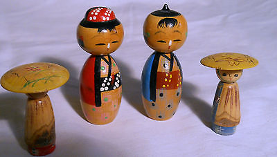 Title (ebay affiliate link): Four Vintage Japanese Painted Wooden Dolls/ Small KOKESHI Figures