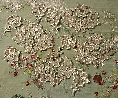 ANTIQUE SILK ORGANDY FLOWER TRIM APPLIQUE LOT FRENCH DOLL DRESS SHEER ECRU