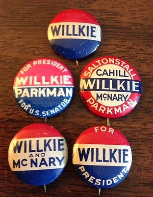 Title (ebay affiliate link): Nice Lot of Five Willkie and Willkie/Coattail Poltical Pin Pin Buttons