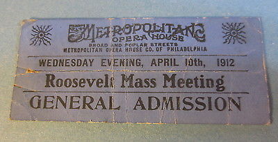 Old 1912 - ROOSEVELT MASS MEETING Ticket - Metropolitan Opera House PHILADELPHIA