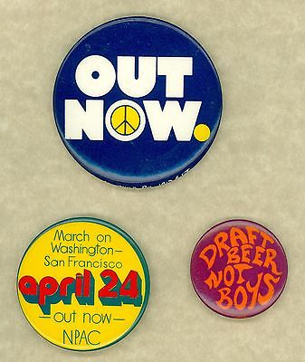Title (ebay affiliate link): 3 Vintage 1960s Anti Vietnam War March On Washington Political Pinback Buttons